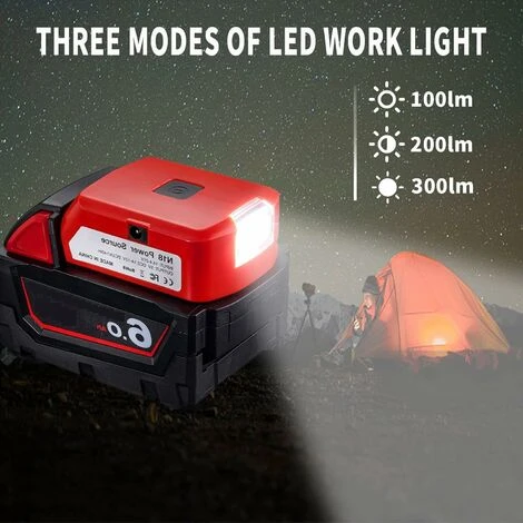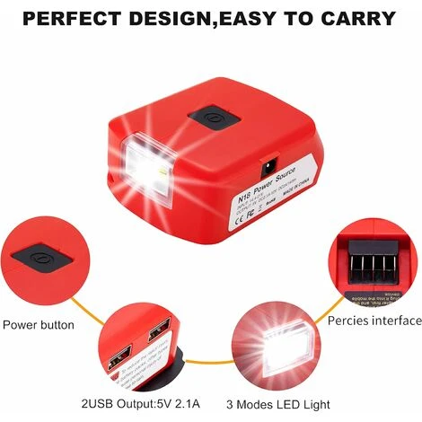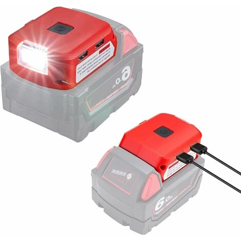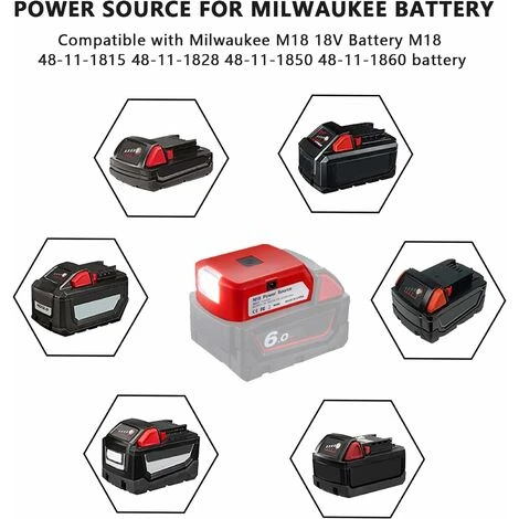 Idéale pour : Milwaukee Batterie 18 V sur une banque d’alimentation USB compatible avec la batterie Milwaukee 18 V 48-11-1860 48-11-1850 48-11-1890
