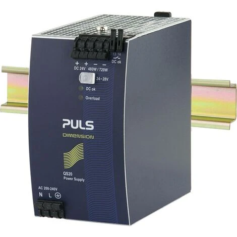 Connexion : borne Ă ressort · Courant de sortie (max.) : 20 A · Dimensions produit, hauteur : 124 mm · Dimensions produit, largeur : 70 mm · Nbr. de sorties : 1 x · Nombre de phases : 1 · Plage de tension d’entrĂ©e : 230 V/AC · Poids : 880 g · Puissance : 480 W · RĂ©fĂ©rence fabricant : QS20.244 · Sortie : 24 V/DC · TempĂ©rature (max.) : +70 °C · Tension d’entrĂ©e (max.) : 240 V/AC · Tension d’entrĂ©e (min.) : 100 V/AC · Tension d’entrĂ©e nominale : 230 V/AC · Tension de sortie (nom.) : 24 V/DC · Tension de sortie maximale : 28 V/DC · Tension de sortie minimale : 24 V/DC · Type (type fabricant) : DIMENSION QS20.244 · Type d’alimentation : Ă€ dĂ©coupage · Type de bloc d’alimentation (catĂ©gorisation) : Alimentation pour rail (DIN)