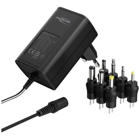 - Tension de sortie12 V/DC, 9 V/DC, 7.5 V/DC, 6 V, 4.5 V/DC, 3 VPour les appareils d’une puissance de 300 mA max.