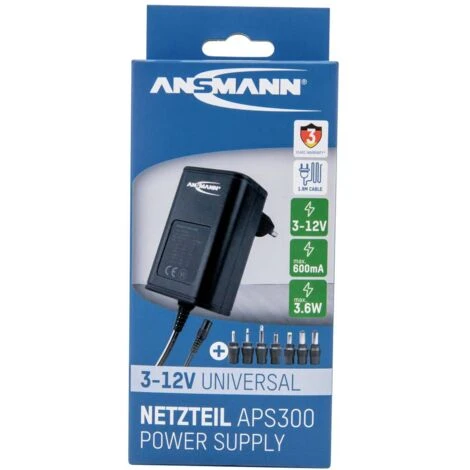 Bloc d’alimentation universel pour une large gamme d’appareils avec l’APS 300, vous avez la possibilité de faire fonctionner un grand nombre d’appareils électriques de petite taille tels que des ordinateurs de poche, des appareils photo numériques, des appareils de mesure, un lecteur MP-3, un lecteur CD, etc. Pour une compatibilité optimale avec les nombreux appareils, un jeu de douilles de sept rangées est fourni. Les connecteurs creux et de jack les plus courants qu’ils contiennent garantissent un contact idéal. Quel que soit l’appareil à utiliser. Un commutateur rotatif situé à l’arrière du bloc d’alimentation permet de régler la tension de sortie. L’APS 300 est protégé contre les courts-circuits et la tension stabilisée. Convient aux consommateurs jusqu’à 0,6 A, 3,6 W de puissance max. Ce texte a été traduit par une machine.