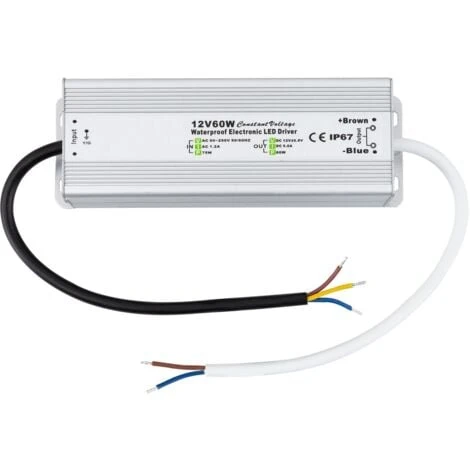 Transformateur AC à DC avec protection IP67, qui fournit une sortie de 12V DC de 5A.