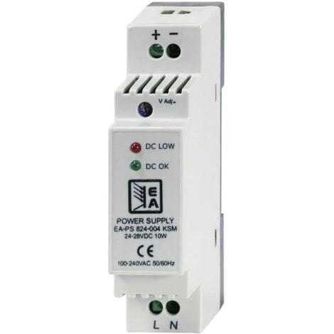 Bloc d’alimentation économique conçu pour un montage sur rails DIN TS35/7,5 ou DIN TS23/15. Il est équipé d’un boîtier robuste et répond à la classe de protection IP20. Tous les modèles de la série EA-PS 800 KSM ont une large plage d’entrée de 90 à 260 V/AC ou 120 à 370 V/DC et peuvent donc être utilisés dans le monde entier. Les modèles sont protégés contre les court-circuits, surcharges, surtensions et surchauffes. Avec tension de sortie réglable 12-15 V/DC.
