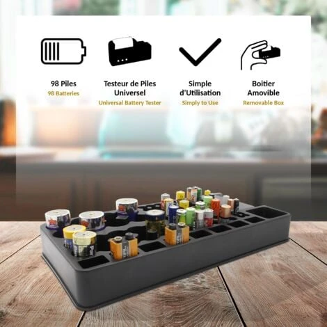 Rangement – Capacité 98 Piles – Testeur
