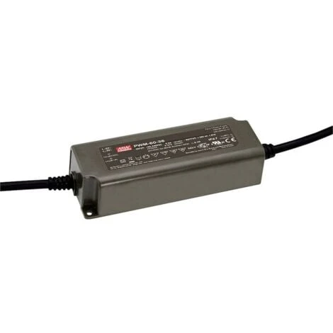Alimentation à découpage avec tension de sortie MLI dans un boîtier plastique étanche (IP67) avec une plage de tension d’entrée de 90-305 V/AC.
