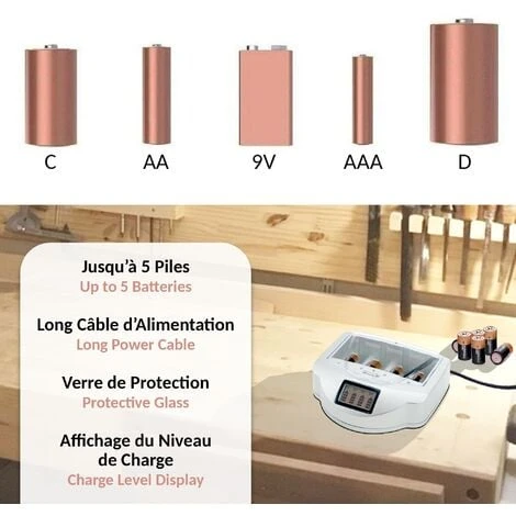 Chargeur Universel de Piles C/D/AA/AAA/6LR61 Ni-Cd Ni-Mh + ALCALINES