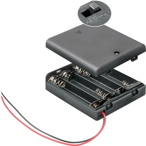 Le support de pile AA est équipé d’un interrupteur marche/arrêt et d’extrémités de câble libres.