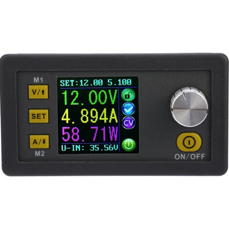 écran LCD et de la tension / fonction de mesure de courant, vous pouvez voir la tension / courant préréglée, tension d’entrée, tension de sortie / puissance actuelle, sortie, etc.