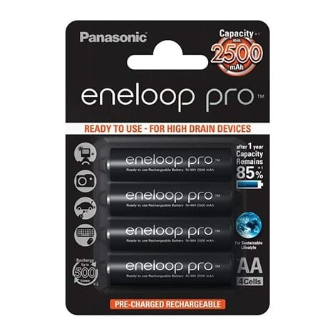 Blister de 4 piles rechargeables LR6 AA – Eneloop Pro PANASONIC