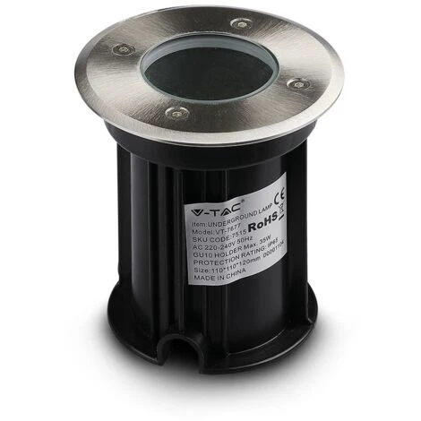 Alliant élégance et beauté, la V-Tac VT-7677 est un spot encastrable au sol pour l’extérieur. Le spot encastrable au sol est fabriqué à partir d’acier inoxydable et de plastique. Il est disponible en format rond et carré. Pourvu d’une douille GU10, ce spot encastrable au sol est fourni sans source lumineuse. Dès lors, vous pouvez placer toute ampoule d’une puissance maximale de 35W dans le spot encastrable au sol.