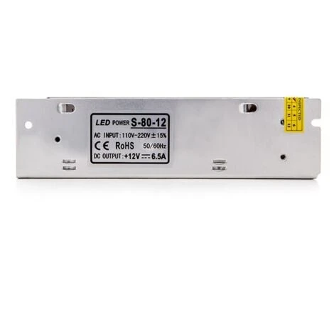 Cette source est régulée électroniquement en 12VDC, particulièrement recommandée pour l’utilisation de LED. Il garantit que la LED ne recevra pas de pics de tension et/ou de courant grâce aux composants avec lesquels elle est construite. La source possède son entrée traditionnelle 230V et une sortie 12VDC 6.5A.