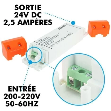 Transformateur LED SELV 24V/DC 2.5A Max 60W