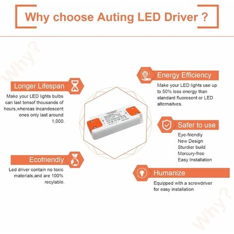 Caractéristiques de l’unité de puissance d’entraînement : pas de charge minimale ; pas de bruit de transformateur ; pas de scintillement LED, protection contre les surtensions et les courts-circuits.